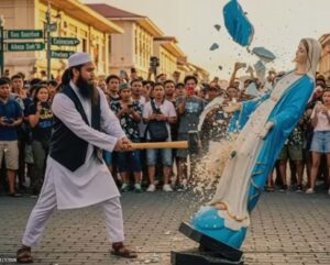 The morning after Rashid’s act of destruction, the village of San Rafael was in turmoil. The peaceful coexistence that had long existed between Muslims and Christians in this region now seemed fragile, shattered by the violence of one man’s actions. The destroyed statue, a beloved Christian symbol, lay in pieces in the town square, and the question on everyone’s mind was: What would happen next?
