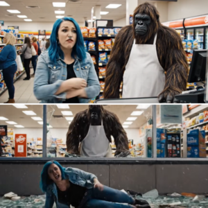 SHOCKING NEWS!!! A gorilla wearing a white apron has turned a routine trip to the supermarket into an extraordinary sight, captivating shoppers with…