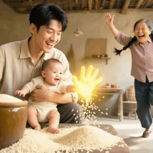 The little baby is possessed by a divine power—just a finger flick, and a whole bag of rice appears! . . The night…