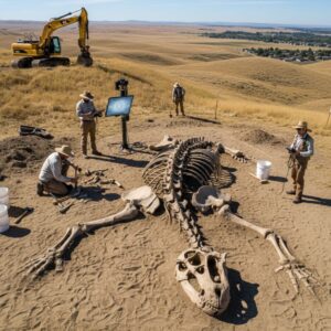 Titan of the Badlands: North Dakota’s Colossal Prehistoric Skeleton Stuns the World! In the windswept expanses of North Dakota’s Badlands, paleontologists have made…