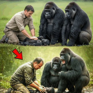Ranger Finds Gorilla Crying for Her Baby, What Happens Next Shocked Everyone! . . In the heart of a dense rainforest, a torrential…