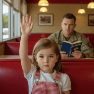 At a quiet roadside diner, a three-year-old girl curled her tiny hand into an S.O.S. signal. A soldier, seated a few booths away,…