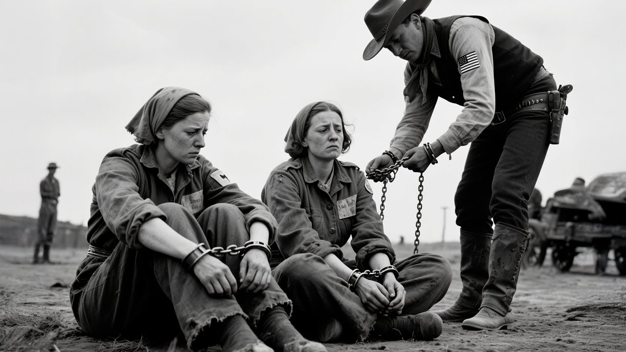 Morrison’s gaze moved over the women, then down to the chains. He said something to the camp officer in a tone that was not pleading and not polite. Fischer hesitated, then translated carefully, as if the meaning itself were dangerous: “Mr. Morrison says those chains are foolish. He says if you want these women working with livestock, you don’t bring them in restraints that can catch on a gate or a hoof. He won’t take them to his ranch in chains.”