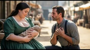 As he made his plea, the crowd shifted uncomfortably, avoiding his gaze. It was Old Martha, the herb seller, who pointed to Norah, suggesting she might still have milk to offer. The man approached Norah, desperation etched on his face. “Can you nurse her just once? Please, I’ll pay anything,” he implored.