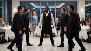 The room sensed it instantly. Conversations thinned. Forks froze midair. The city outside seemed to hold its breath.