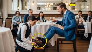 As Isabella turned to leave, Vincent’s voice cut through the air, commanding her attention once more. “Wait, look at this mess,” he said, pointing to his expensive leather shoes, which had been splashed with water from the rain outside. “Clean them.” The request hung in the air, met with a stunned silence from other diners. Isabella felt a wave of embarrassment wash over her; she had faced difficult customers before, but this was a new low.