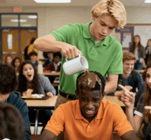 However, his hopes were quickly dashed when he encountered Tyler Brooks, a notorious troublemaker known for his bullying antics. Tyler, flanked by two of his friends, spotted Marcus and seized the opportunity to assert his dominance. “Well, well, look who’s here—the new one,” he sneered, brandishing a steaming cup of coffee like a weapon.