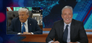 The host then dissected Trump’s ongoing attacks on his critics and the Department of Justice. Stewart highlighted Trump’s public posts demanding prosecution of political opponents like James Comey and Letitia James, likening the rhetoric to mafia threats from “Goodfellas.” “We could do this the easy way or the hard way,” Stewart mocked, using a goofy Boston accent to lampoon the intimidation tactics.