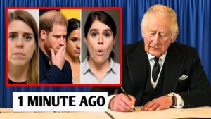 London, UK – In a move that has rocked centuries of royal tradition, King Charles III delivered a bombshell announcement that sent shockwaves through Buckingham Palace and beyond. In a single, measured statement, the monarch stripped Prince Harry, Meghan Markle, their children Archie and Lilibet, as well as Princess Beatrice and Princess Eugenie, of their royal titles and privileges—an act unprecedented in modern royal history.