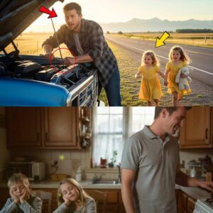 When Jake left, the twins were waiting with a crumpled drawing: two stick figure girls, a smiling mom, and a tall man with a wrench. “Thank you, Mr. Jake,” they’d written. He smiled through the ache in his chest. Sometimes the kindest thing a man can do isn’t fixing engines—it’s fixing hearts.