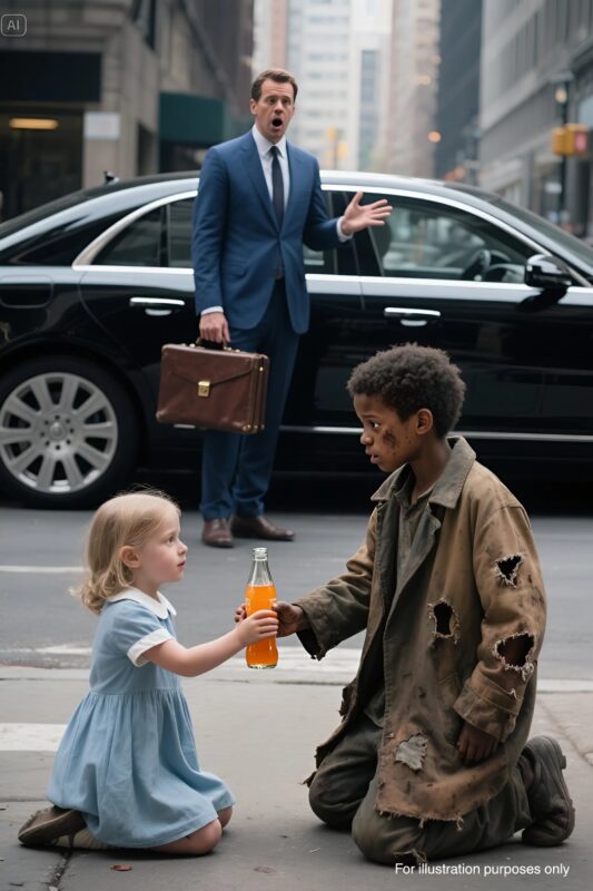 He dropped to his knees, wrapping me in his arms, sobbing like a child. Around us, time seemed to stop. And that girl — her name was Mera — stood quietly, holding the bottle, her eyes full of kindness.