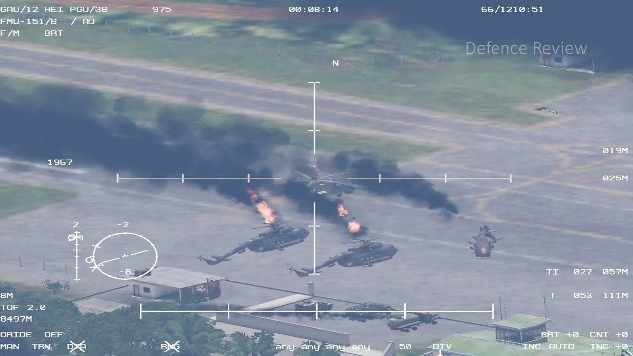 As the gunships continued their assault, the 40mm Bofors cannons unleashed a barrage of fire on the nearby airfield, targeting runways, fuel depots, and aircraft hangars. The airfield, once a bustling hub of enemy aviation activity, was left in ruins, with multiple aircraft destroyed on the ground. Witnesses described the scene as a “fiery inferno,” with the roar of gunfire and explosions echoing across the region.