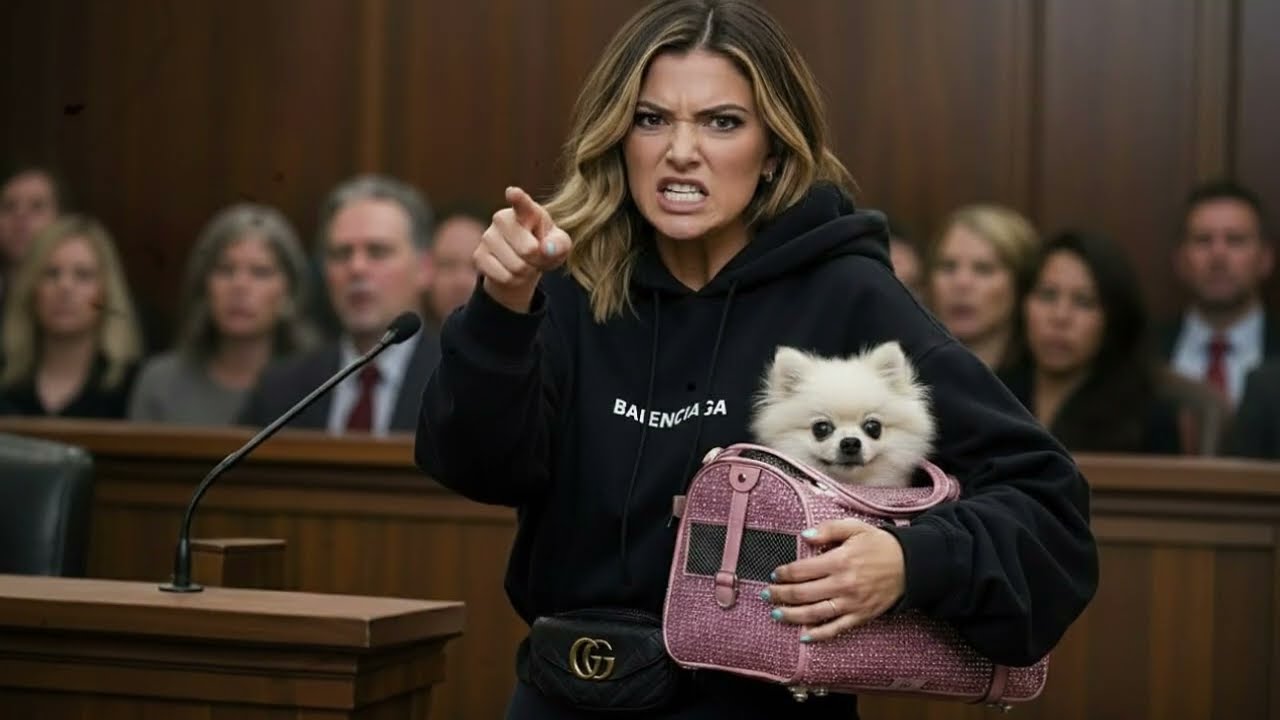 Across from her sat Britney Spencer, 28, a lifestyle influencer with approximately 240,000 Instagram followers, dressed in designer clothing and carrying her Pomeranian in a rhinestone-studded carrier. Spencer appeared dismissive throughout the proceedings, at one point taking selfies in the courtroom before being ordered to put her phone away.