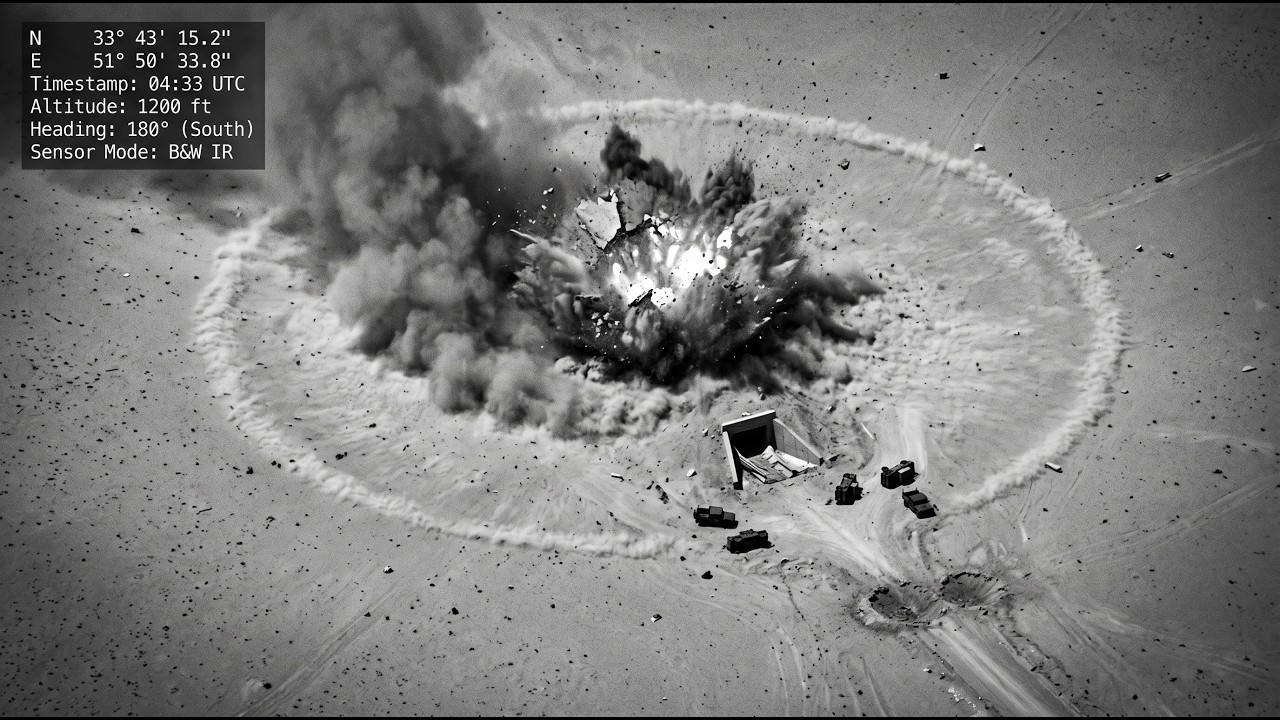 Remote footage captured by U.S. drones showed a fiery plume rising into the night sky, the explosion visible for miles and followed by a concussive shockwave that rattled nearby structures. Iranian state media initially reported “unidentified explosions,” but later acknowledged that military installations near Tehran had been hit.