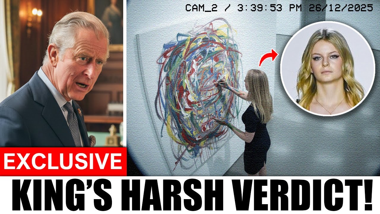 During the lunch break, Lola slipped away from the crowd, seizing a forgotten key to the strictly off-limits creativity suite. Alone and driven by resentment, she poured black ink over Louise’s central masterpiece—a painting symbolizing hope for a greener future. Her act was witnessed firsthand by King Charles, who appeared in the doorway at the exact moment of destruction.