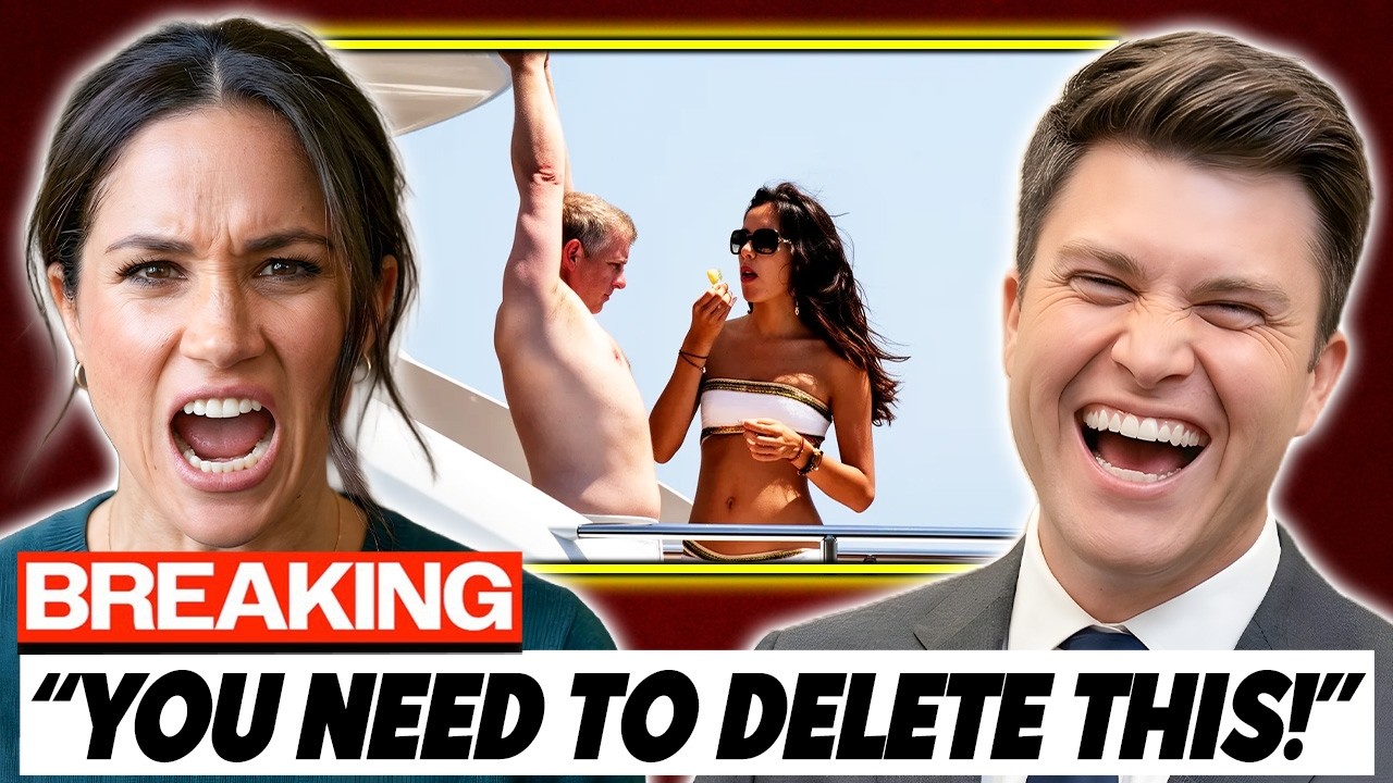 In the world of fame and fortune, every calculated move can make or break a public image. Meghan Markle, once lauded as the modern-day royal outsider, is now facing intense scrutiny as her carefully curated brand begins to unravel in the face of growing rumors and resurfaced photos. A recent viral moment triggered by comedian Colin Jost’s offhand remark about Meghan Markle’s alleged yacht girl past has escalated into an internet firestorm, questioning the authenticity of her carefully built image.