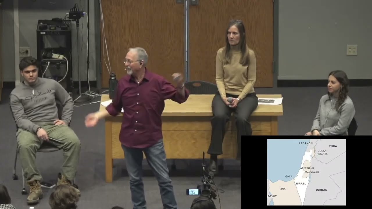 In an attempt to ground the discussion, the professor offered a rapid overview of the conflict, emphasizing that the region’s history is deeply complex and cannot be reduced to slogans. He explained the creation of Israel in 1948, the territorial changes after 1967, the presence of Palestinians inside Israel, and Jewish communities in the West Bank.
