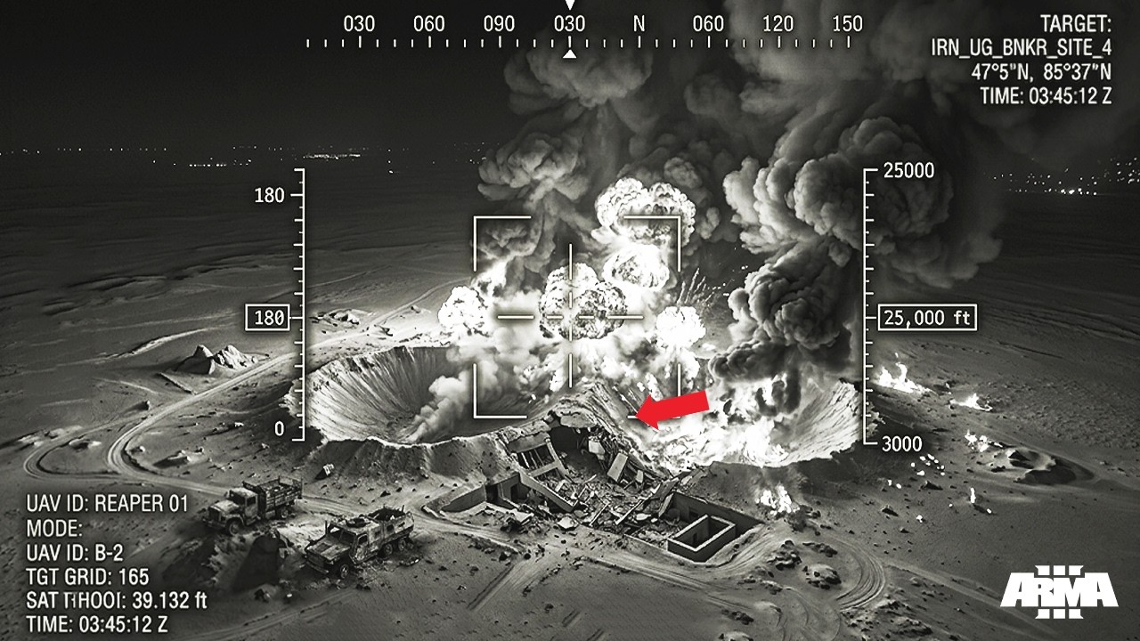 At approximately 23:47 local time, an American B‑2 Spirit — one of the most advanced stealth bombers ever built — crossed into contested airspace undetected. Carrying precision‑guided munitions capable of penetrating reinforced underground targets, the aircraft released a series of penetrator bombs that vanished into the desert floor before erupting deep below the surface.