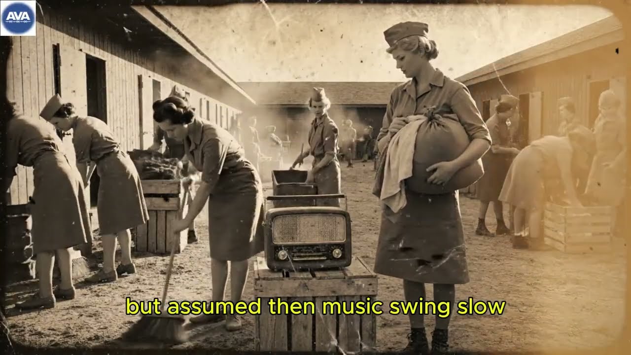 She stopped sewing. She couldn’t help it. In Germany, she had heard music during the war too—marches, anthems, songs sharpened into weapons, songs that demanded posture, loyalty, and volume. But this was different. This was music that didn’t ask her to believe anything, to stand tall or bow her head. It just existed. It was as if the world outside this camp—outside the fences, outside the conflict—was still moving on. She felt the wrongness of it settle deep in her chest.
