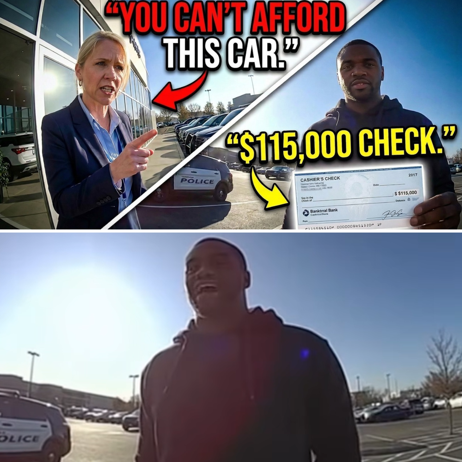 Desmond complied immediately with instructions to step outside. He remained calm, articulate, and precise. Before leaving the showroom floor, he made a deliberate statement for the officer’s body camera, clearly outlining what had occurred: he had been denied service without inquiry, judged solely on appearance, and asked to leave despite being a legitimate customer.