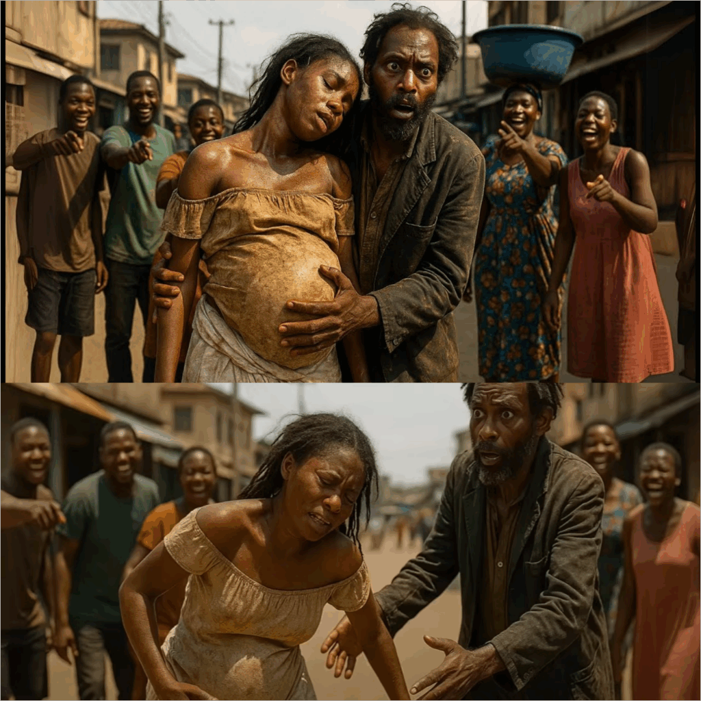 A soft, panicked voice rose above the Lagos street noise. “Help me… I’m dying. My belly… save the baby.” Adana, heavily pregnant and barely nineteen, staggered into the roadway. Her dress was torn and sweat-streaked. She had not eaten in two days. Her legs wavered. With her final strength, she collapsed into the arms of the city’s quiet beggar: an older man known as Jonathan, the worn figure people ignored by a bridge light.