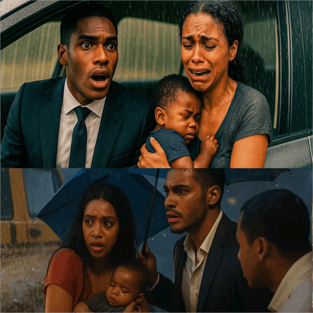 The woman didn’t flinch. Her hair plastered to her face, her thin dress soaked, she shielded her baby against the rain. The child let out a tired, raspy cry that cut through Oena’s anger. He saw the child’s small body shivering, and something inside him shifted. “Why are you in the road?” he demanded, voice softer now.