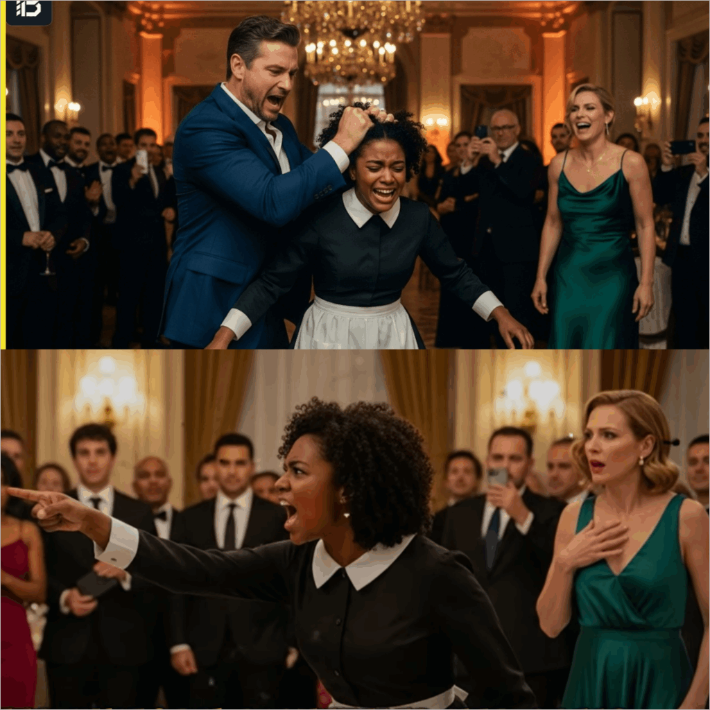 The grand ballroom of the Wittman estate gleamed with opulence, but the air was heavy with tension. Maya Williams, a 29-year-old maid, knelt on the cold marble floor, her breath knocked out of her. Silver trays and caviar lay scattered around her, the aftermath of an accidental stumble. Above her loomed Richard Wittman, the billionaire CEO of a massive real estate empire, his Armani tuxedo ruined by spilled champagne. His face burned with anger.