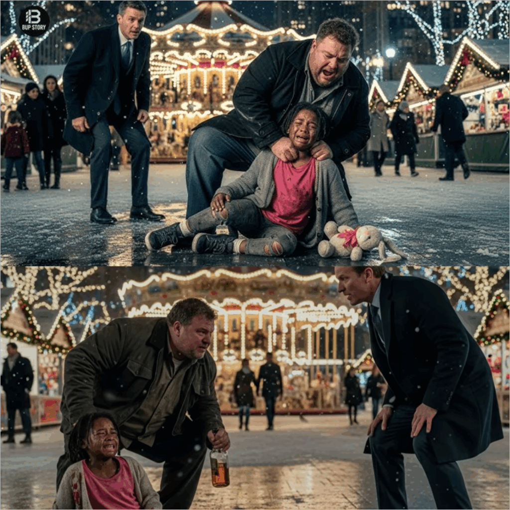 But Ethan Cole did not move on. At forty-five, he had built a global empire but lost his wife and daughter a decade ago. Christmas was a hollow ache. Tonight, something in him refused to look away. He stepped forward, voice low but unyielding: “That’s enough.” The drunkard sneered, “Mind your business, rich boy. She’s mine.” Ethan replied, “Not tonight. Not ever again.” With a curse, the man staggered off, vanishing into the crowd.