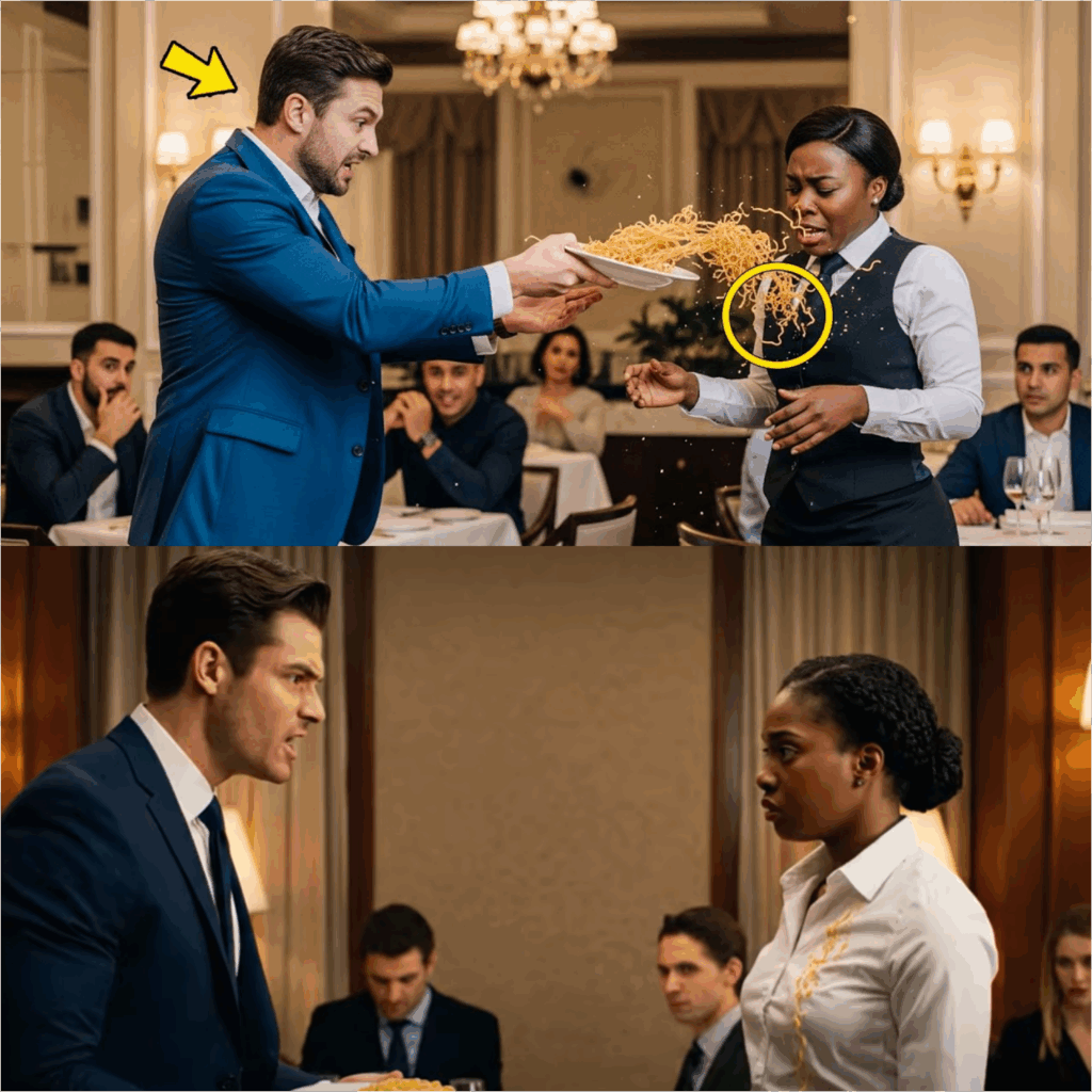 The turning point came when Maya approached with dessert menus. Wellington was in the middle of a heated business discussion, his voice carrying across the restaurant despite the manager’s subtle attempts to quiet him. As Maya reached for his empty plate, Wellington suddenly grabbed her wrist.