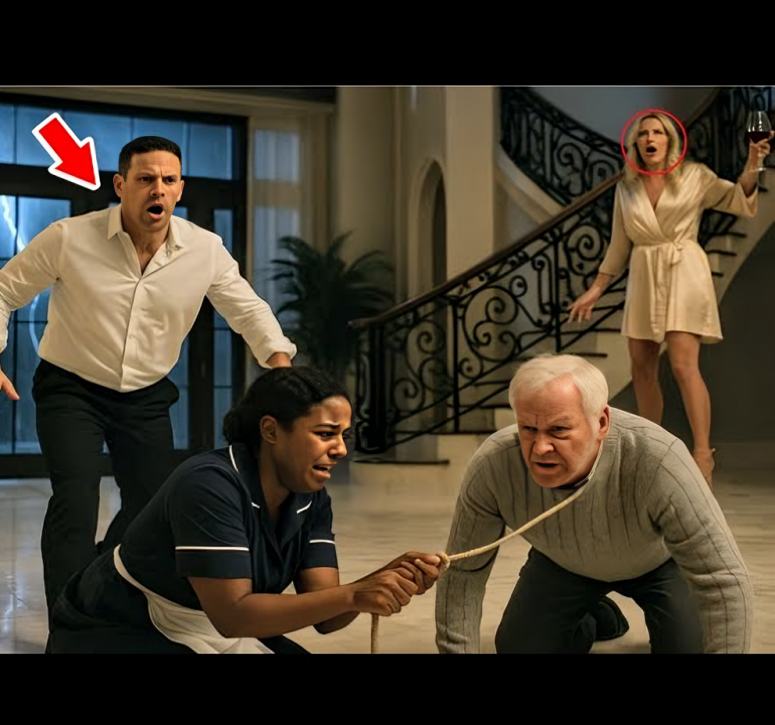 Billionaire Walks In and Saw His Father on the Floor Barking &The Maid Holding a Rope tired to His..