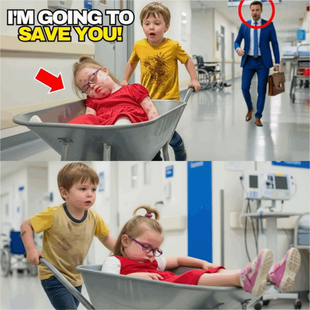 Liam reached the hospital entrance first. Medical staff, shocked to see a child arriving with another child in a wheelbarrow, took over immediately.