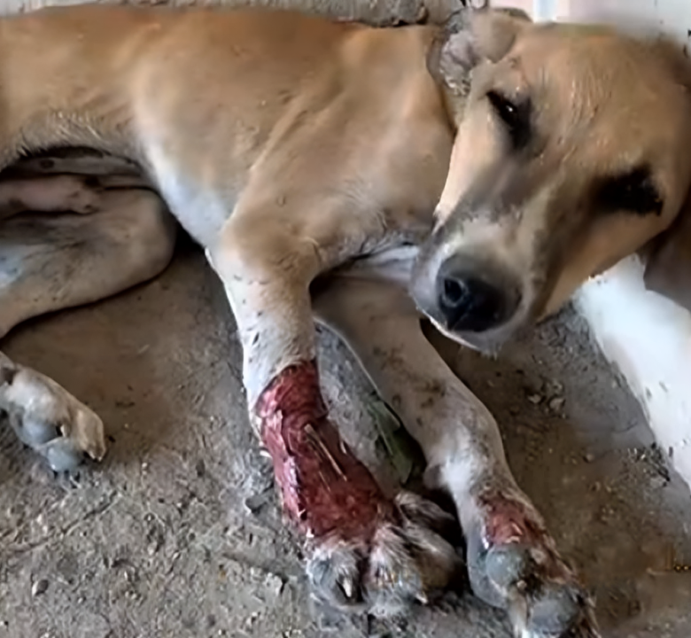 The midday sun beat down mercilessly on the dusty road outside the shelter, but inside, the air hung heavy with a different kind of oppressive heat—the silence of pain. In the far corner of the isolation ward, on a thin, worn blanket, lay a small, golden-furred puppy. He was curled tightly, his breathing shallow, and the only color that truly stood out against his light coat was the angry, weeping red of his foreleg joints.