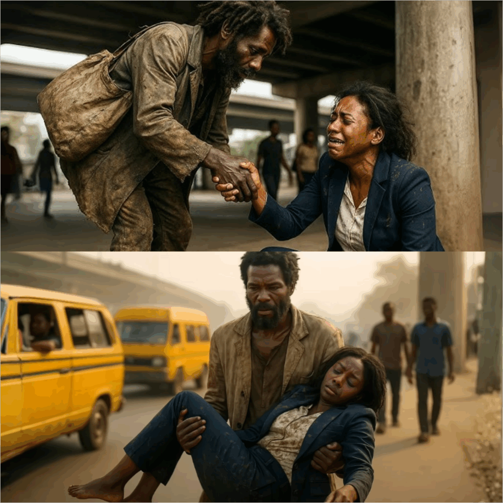 One morning, as Benjamin searched for scraps, he heard a faint voice: “I can’t walk. Please help me.” He hesitated, fearing a trick, but the plea came again. He found a young woman in a navy blue suit, half-lying on the dirty ground, her face pale and lips dry. She looked as if she’d fallen from a world that knew nothing of bridges or hunger.