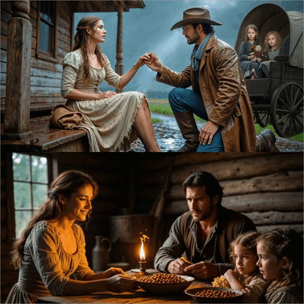 That night, she cooked what little she could find—dried beans, a few potatoes, and a jar of pickled beets. The girls didn’t eat much, staring at her with wide eyes. Eliza smiled gently but said little. Jed sat at the table like a statue, eating in silence, his presence filling the room without trying.