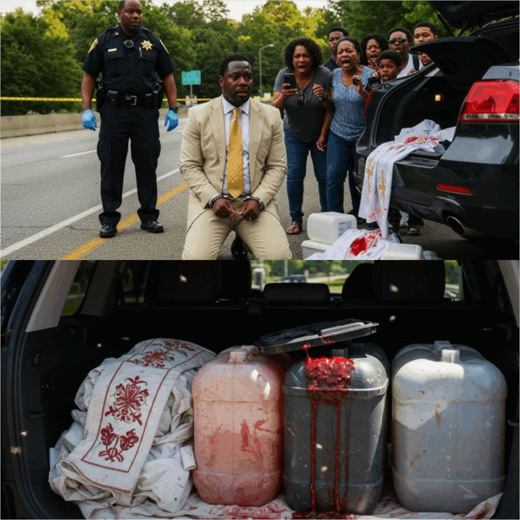 The trunk of Pastor Thabo Kumalo’s black Cadillac Escalade opened with a soft mechanical hum, revealing a scene that would send shockwaves through the community. A dark red stain had soaked into the white robe beneath a container, the metallic smell of blood filling the air. Senior Officer Grant, a veteran of the Atlanta PD, put on gloves and cautiously opened the container. He stepped back, his voice trembling as he announced, “We’ve got a head.” His junior partner, Officer Harris, staggered back, covering his mouth in horror.