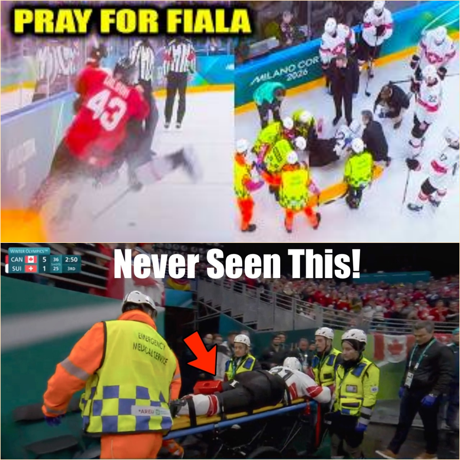 Swiss NHL star Kevin Fiala was stretchered off the ice — face down.