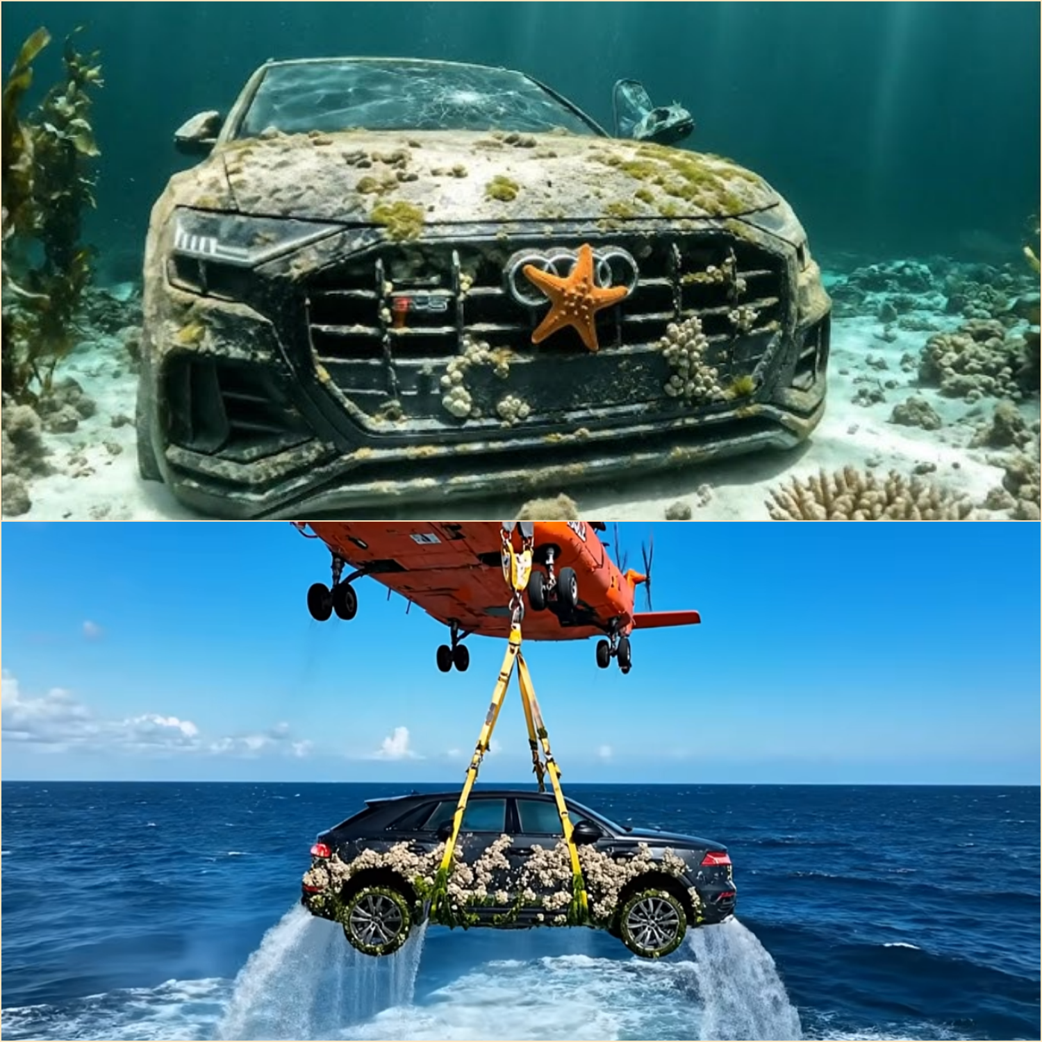 When the ROV (remotely operated vehicle) finally reached the site, it captured images that stunned everyone. There, lying in the seabed, was a pristine, yet eerily silent, luxury SUV—the unmistakable silhouette of an Audi Q8. Its sleek contours, now covered in encrusted barnacles and coral, shimmered faintly under the ocean’s dim light. The car was remarkably intact, almost as if it had been frozen in time.