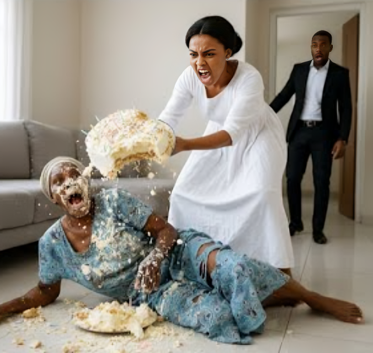 Mama bent down to pick up the small birthday cake that had fallen from her nylon bag—the cake she had made with trembling hands just to light one little candle for herself. But before she could pick it up, a hand—Nkiru’s hand—struck Mama’s hand away. The slap sent Mama’s hand recoiling, and the cake splattered into the muddy puddle.