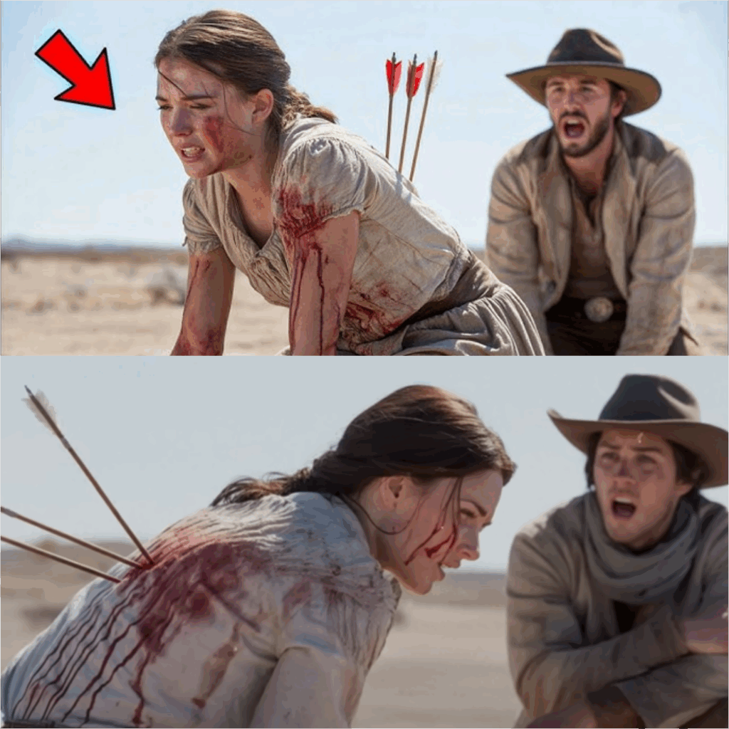 The arrow jutted from Sarah Milfield’s shoulder like a cruel promise, its feathers trembling with every ragged breath. She knelt in the dirt beside her kitchen table, one hand pressed against splintered wood, the other reaching behind her toward the shaft buried deep in her back. “Please… don’t pull it,” she whispered as footsteps approached.