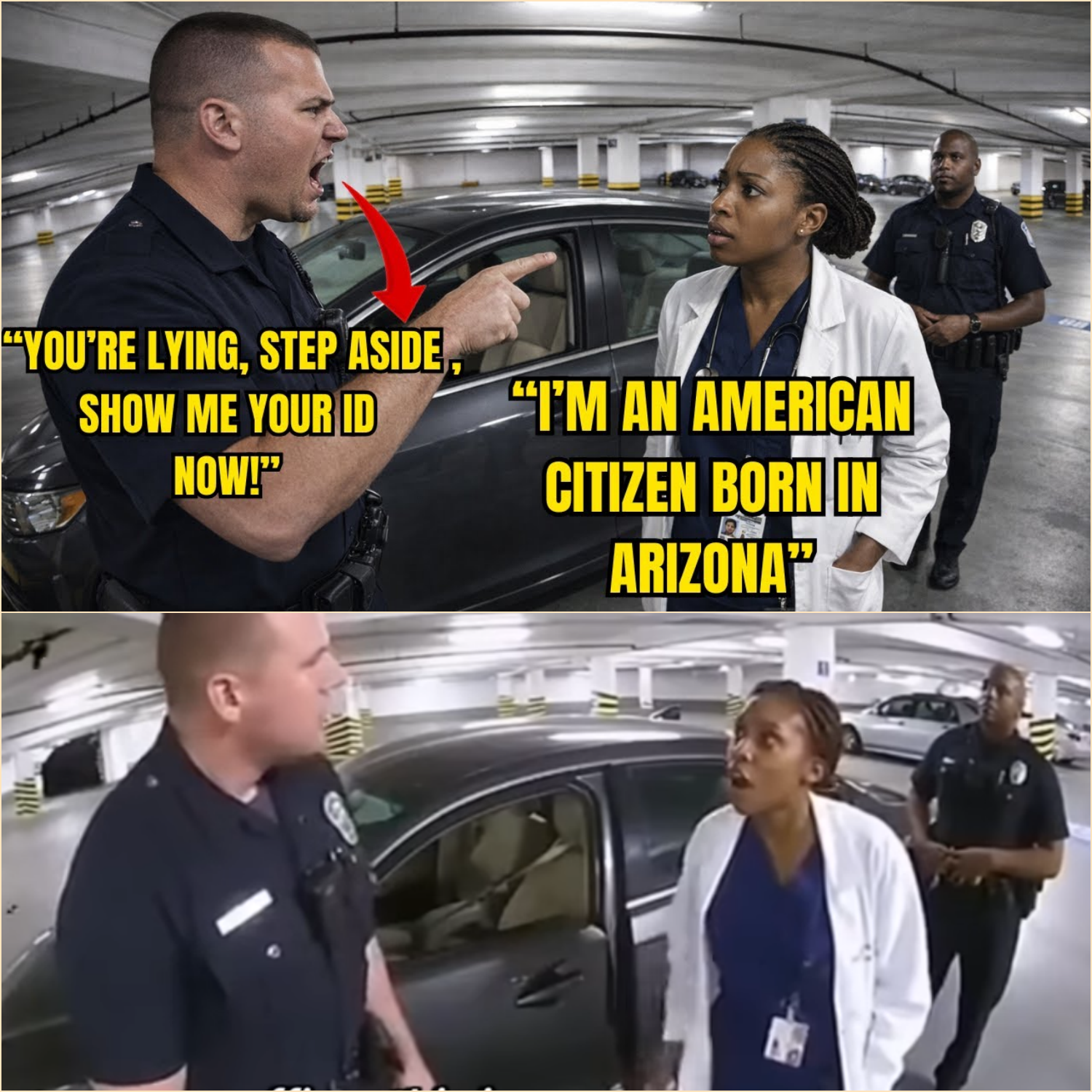 “This is my vehicle,” she said calmly. “I just finished my shift here. I’m a surgeon at this hospital.”