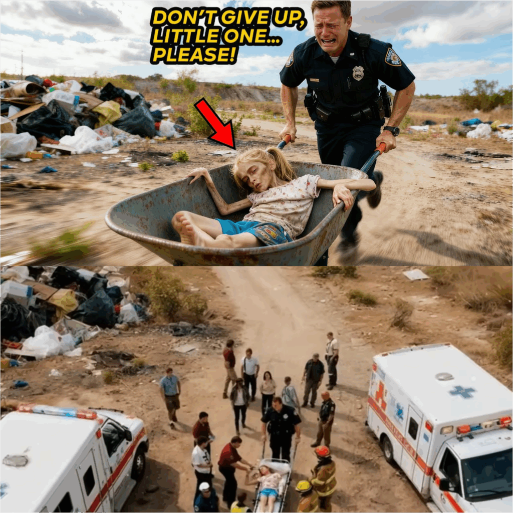 He found an old wheelbarrow, cleared it, laid his jacket inside, and lifted the girl with care. “I’ve got you,” he said, voice steady over the fear in his chest. As he pushed over gravel and weeds, her eyes fluttered. “Laya,” she breathed. “Uncle John… don’t want to go back.” Then darkness again.