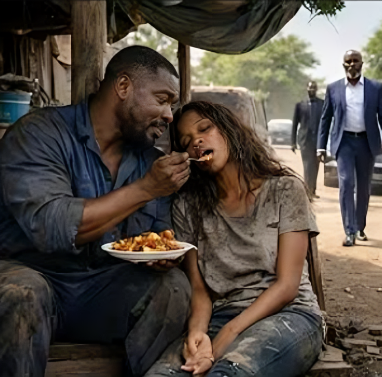 Zara sat weakly on an old wooden bench inside Johnson’s roadside mechanic workshop. The bench was cracked, unstable, pressed against a wooden pillar that had survived too many rainy seasons. Above them, a tired, dusty canopy hung low, its torn edges fluttering as if it might finally give up.