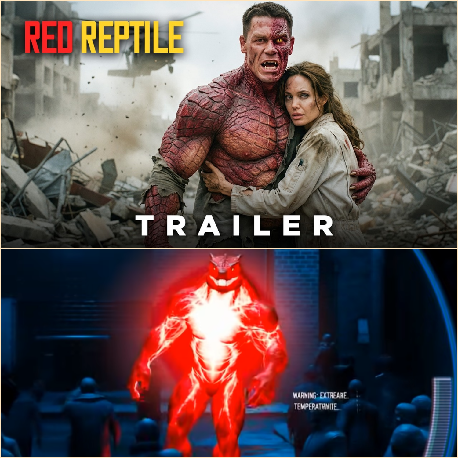 “Red Reptile (2026)” is more than just a fan-made trailer; it’s a compelling vision of a future where humanity’s pursuit of power threatens to consume itself. With John Cena’s raw physicality and Angelina Jolie’s moral depth, this story explores the terrifying potential of genetic engineering, the ethical dilemmas of creating life, and the fight to retain one’s humanity in the face of monstrous transformation.