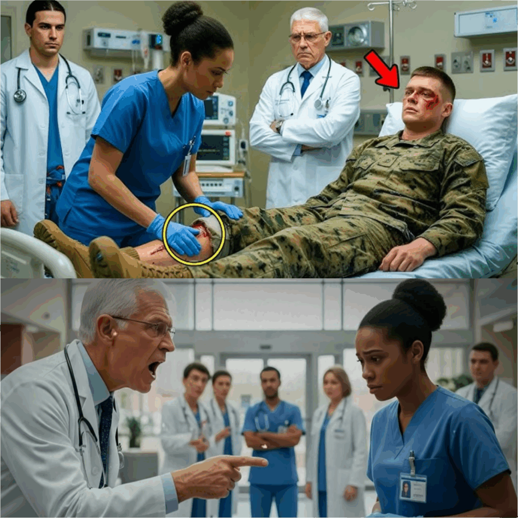 As the team prepped him for ICU, Katie found a dog tag tucked under his collar: “L. Holmes, US Marine Corps.” Her breath caught. He wasn’t just any patient—he was a Marine, and she had nearly watched him die because no one wanted to break protocol.