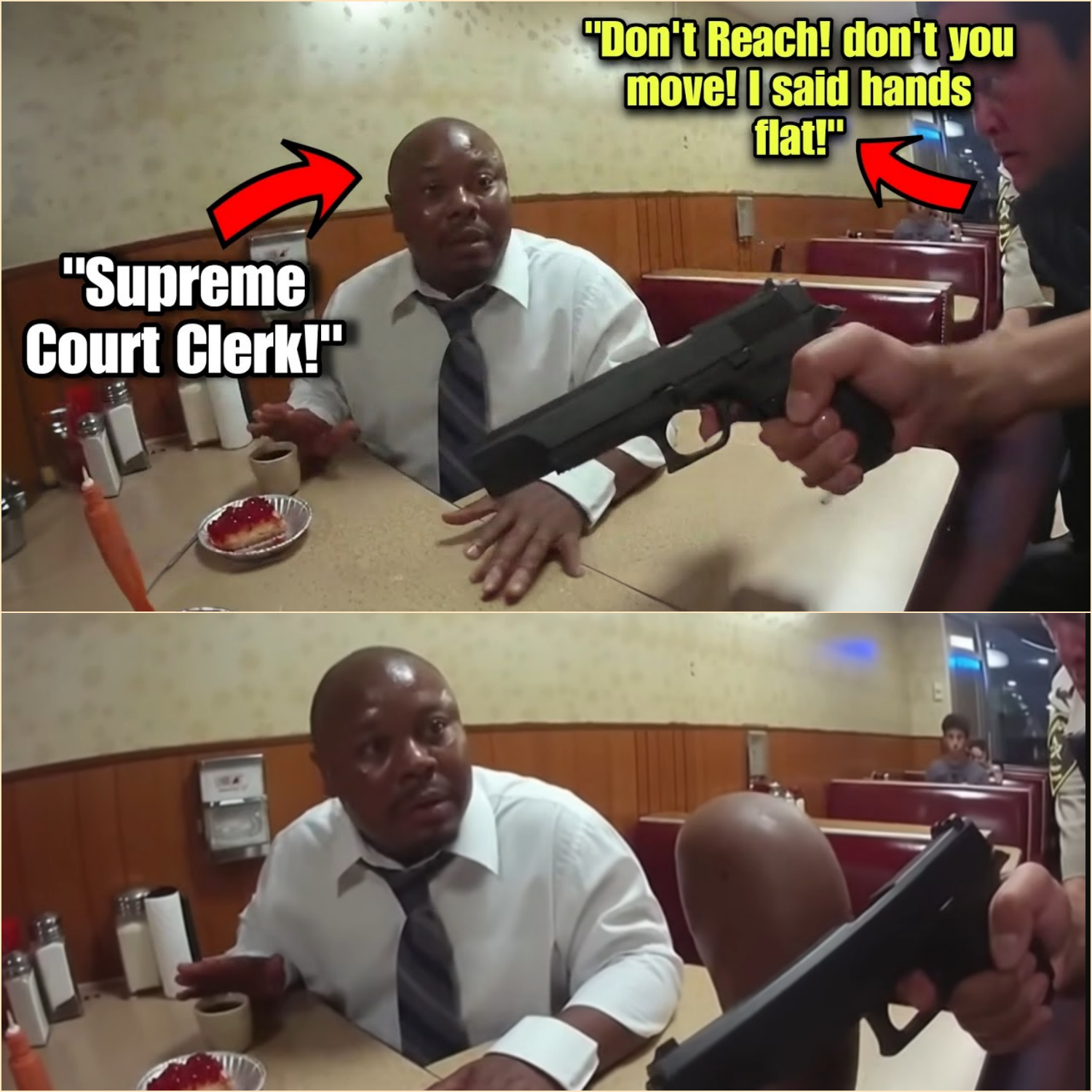 The image lingers: a man in a booth, hands flat on a Formica table, calmly reciting the law while guns hover inches away.