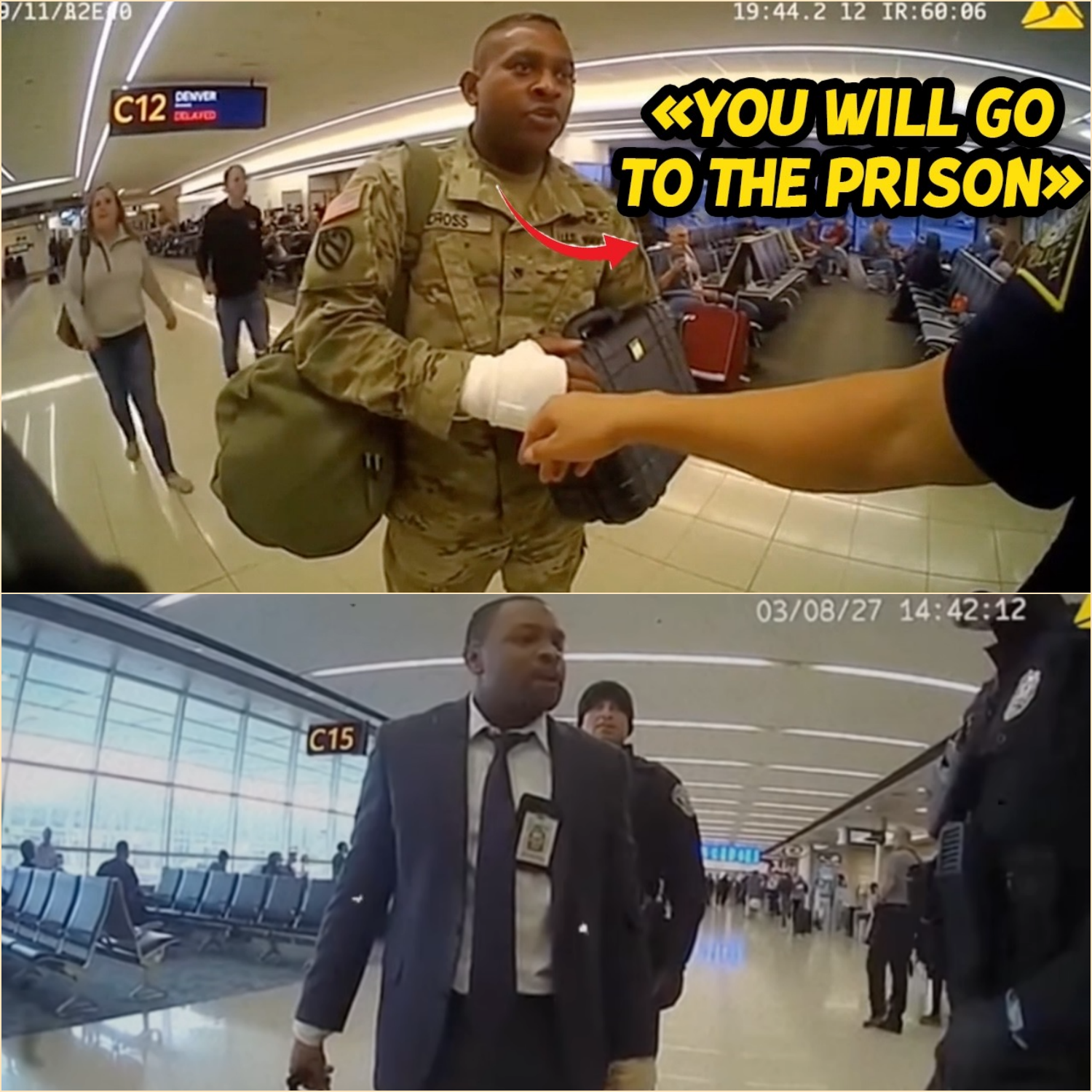 A uniformed military officer—injured, exhausted, and carrying a sealed government case—was violently forced to the floor by a local airport police officer.