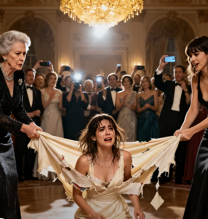 Gasps echoed through the grand hall as I stood there in my underwear under the chandelier’s glare. Two hundred phones captured the moment. I could hear the orchestra stop playing, the faint clicks of cameras, the whispers—“Thief… gold-digger…”