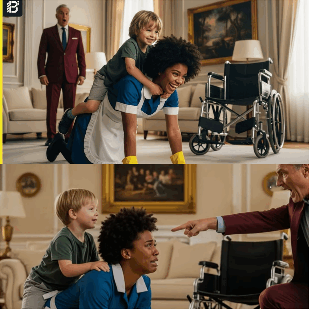 On a day that began like any other, Marcus returned home three hours early. He expected silence, routine. Instead, laughter echoed from the grand living room—a sound so rare it made his heart stutter. There, on the thick Persian rug, Maya William, his 29-year-old maid, was on her hands and knees, and Jacob was perched atop her back, giggling with a joy Marcus hadn’t heard since the accident. Jacob’s wheelchair sat abandoned in the corner, as if, for one moment, it had no claim on him.