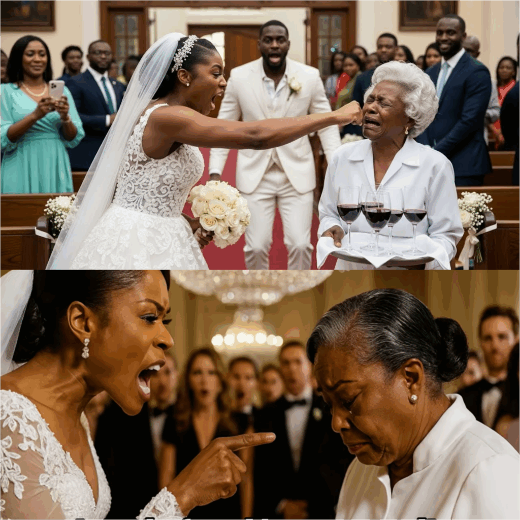 The crystal chandeliers gleamed like constellations above the wedding hall, and the choir’s harmonies swelled through the vaulted church. Cameras clicked. Guests whispered. The bride, Amara, moved as if the aisle were a runway meant only for her. Lace draped her like a cloud of light; diamonds blinked on her wrists and throat. She had curated this moment—every flower imported, every ribbon ironed. She had also curated herself: flawless makeup, perfect posture, a smile sharp enough to slice through doubt.