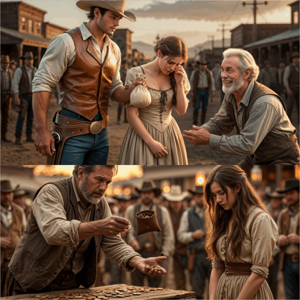 Spring’s breath had reached the prairie, but the air at the town square was still heavy with cold dusk. Lanterns swung, wagon wheels creaked in the mud, and the mingled scent of roasted meat and fresh hay hung over the bustling stalls. Yet beneath the laughter lay the sharp sound of chinking coins and the low murmur of bargain.